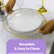 - MATERIAL: These gold beaded charger plates are crafted from durable, thick acrylic, providing strength and stability. With their classic round shape and chic, elegant beaded design, they effortlessly capture attention and add a touch of sophistication to any table setting. The clear acrylic plates are versatile, making them suitable for various venues and festive occasions