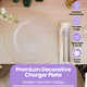 - EASY CARE: These acrylic charger plates can be wiped clean with a damp cloth and should be stored at room temperature. They are not dishwasher or microwave-safe and should not come into direct contact with food. These charger plates are for decorative purposes only