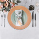 This beautiful round glass charger plate will add a touch of elegance and luxury to any dinner table.