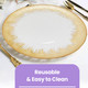 The 13" (33cm) see-through plate has a height of 3cm and features a stunning gold textured trim around the outer edge making them the ideal accessory for special occasions.