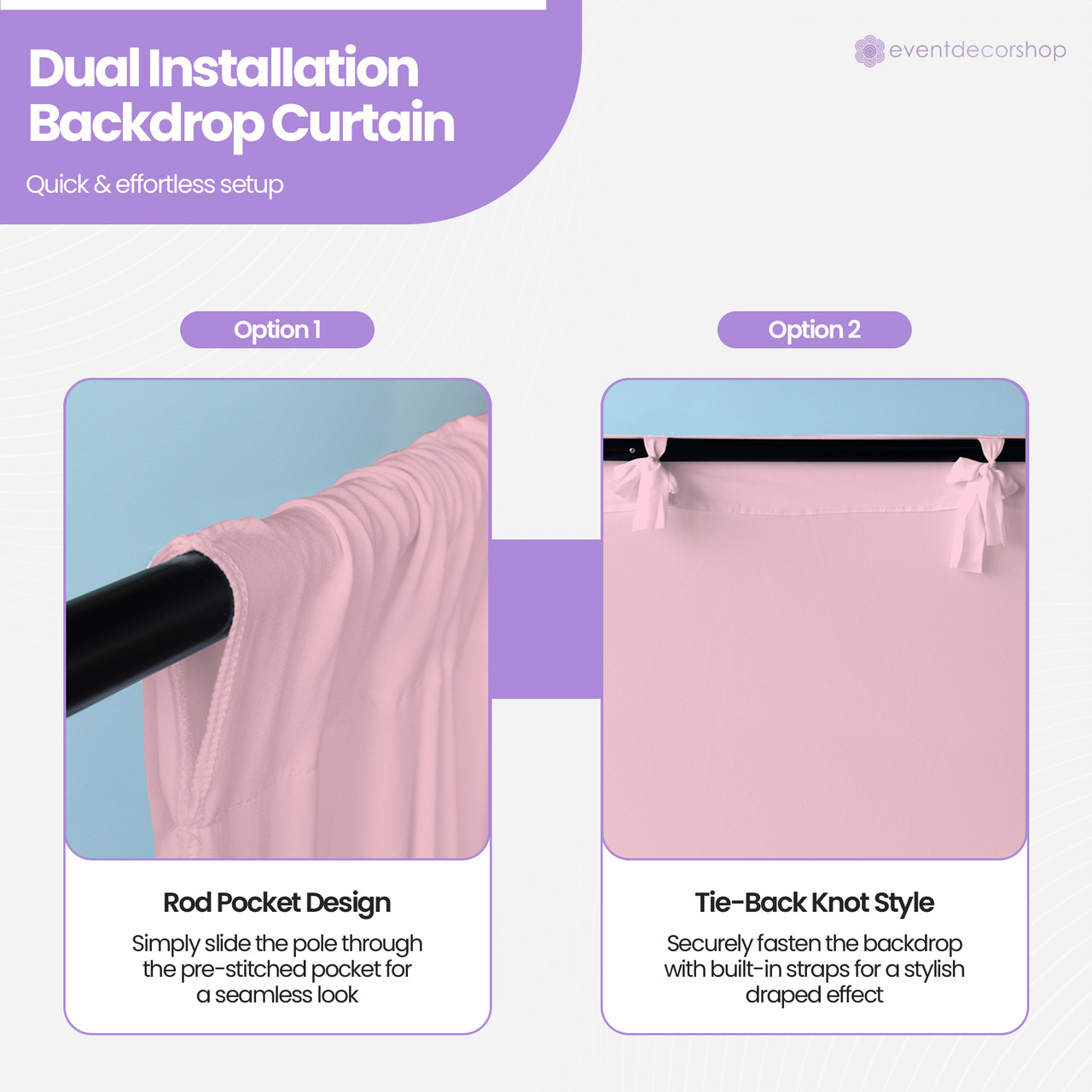 • EASY HANGING: Our backdrop curtains are very easy to install and can be set up very quickly. Each curtain is designed with a pre-stitched pocket for easily sliding the pole for installing the drape and straps on the top, You can use the straps to fix it on the pole or run a rod through the top to hang it on