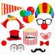 It includes 36pcs of many shapes and sizes such as Clown, Joker, Cat Lady Mask, Popcorn, Moustaches, Kisses, Bow Tie, Neck Tie, Balloons, Spectaculars, Sunglass and many more.