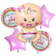 Decorate your home or party venue and celebrate a the arrival of a new baby girl with this 5pc foil balloon set.