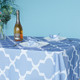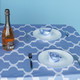 60" x 84" Rectangle Premium Waterproof Polyester Tablecloth - Blue with White Geometic Cross & Star Shapes