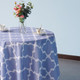 70" Round Premium Waterproof Polyester Tablecloth - Blue with White Geometic Cross & Star Shapes