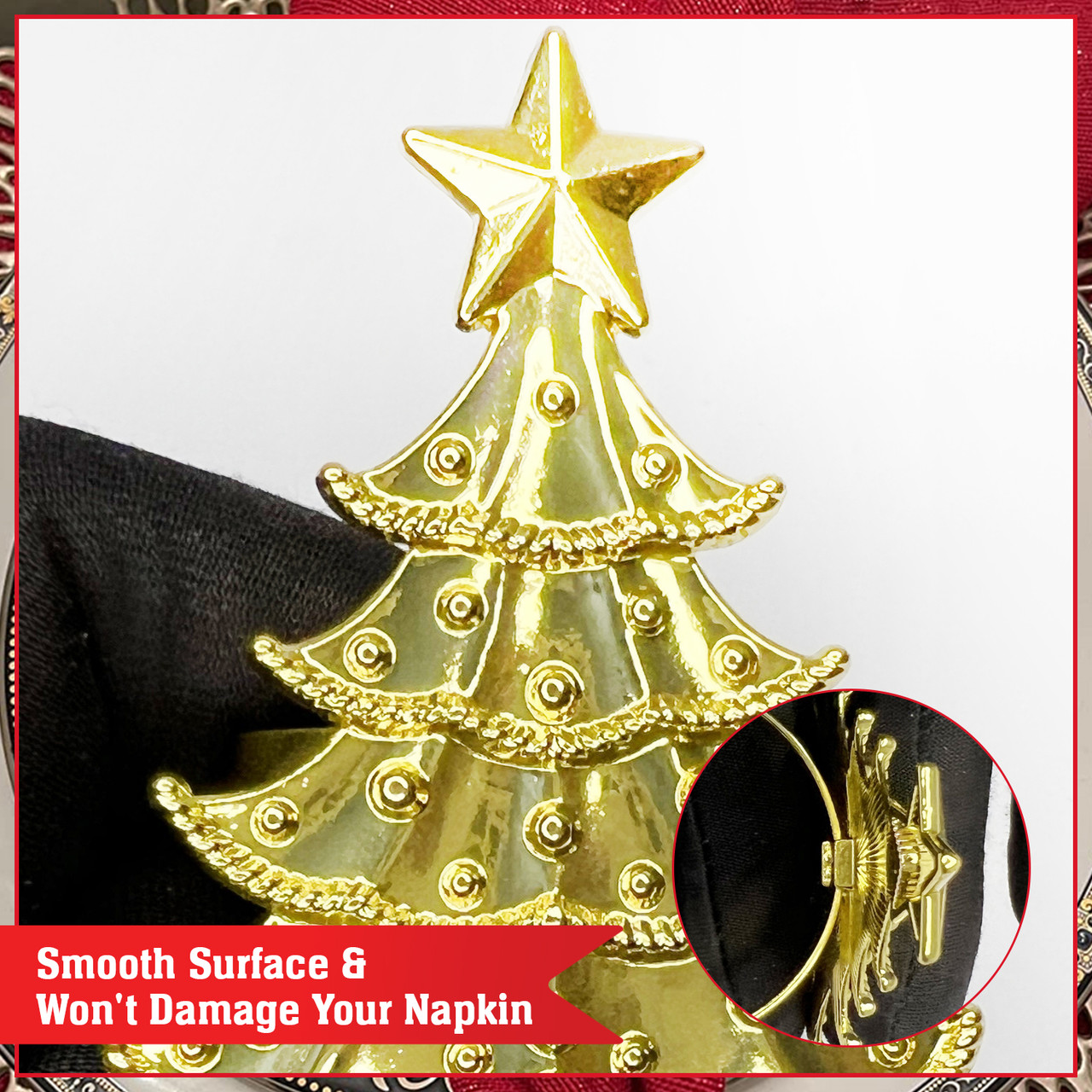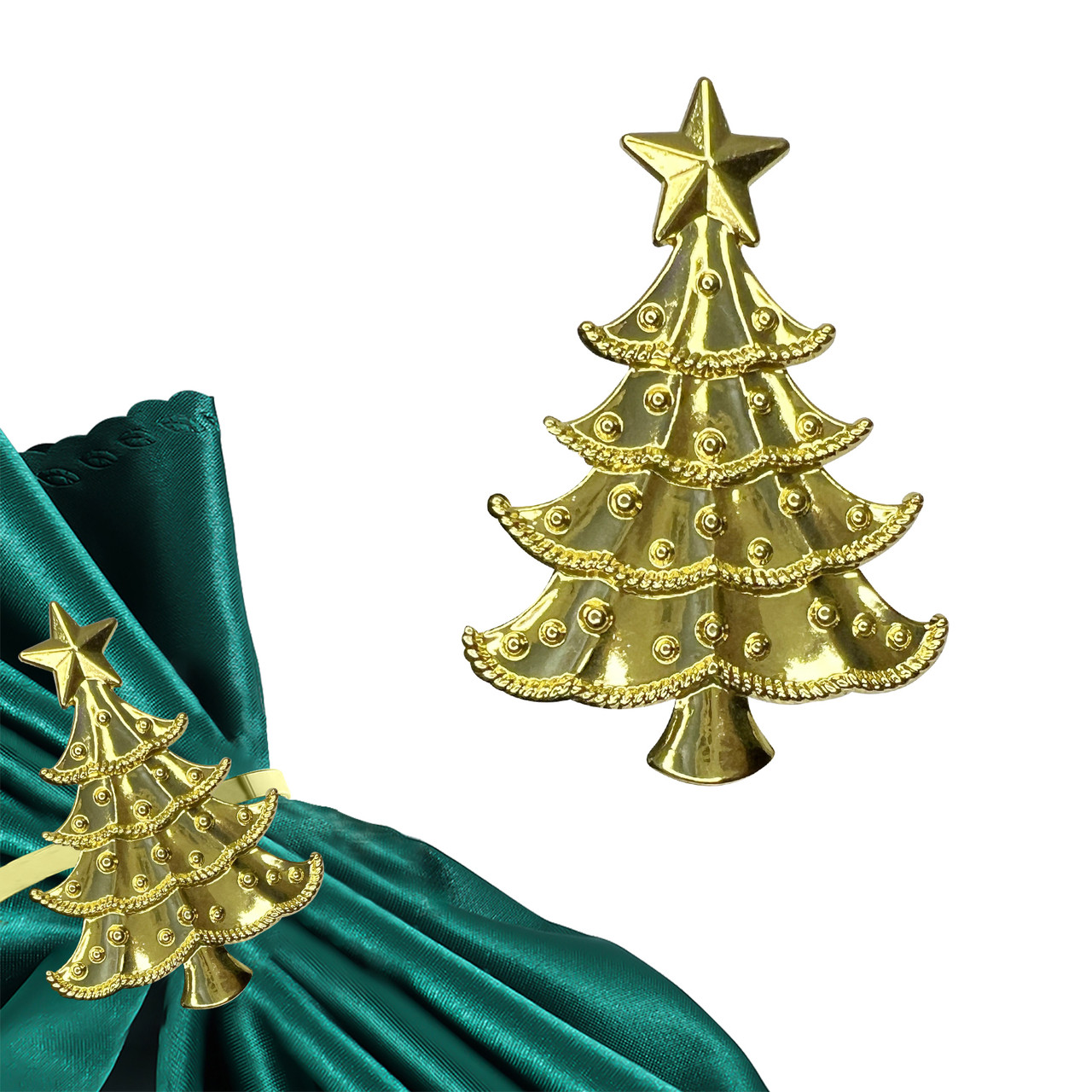 Bring festive charm to your dining setting with these gold Christmas tree napkin rings, each topped with a shining star. Their bright finish adds a touch of seasonal elegance, making them a beautiful addition to your Christmas table décor.