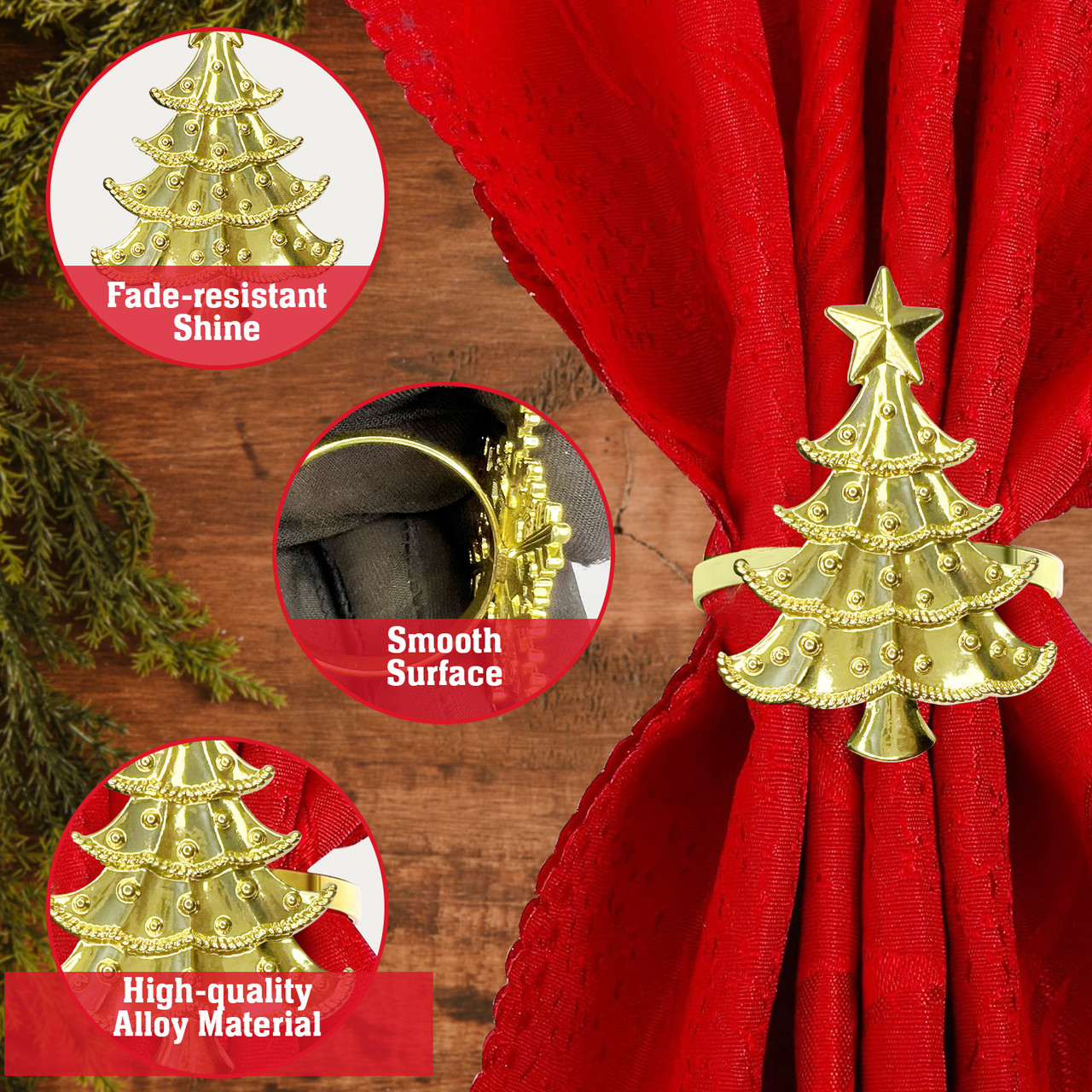 Choose from packs of 1, 4, 6, 8, 12, or 18 pieces to suit your table setting needs. Designed to pair with a variety of napkin fabrics and styles, these decorative Christmas napkin rings complete your festive table arrangement with ease.