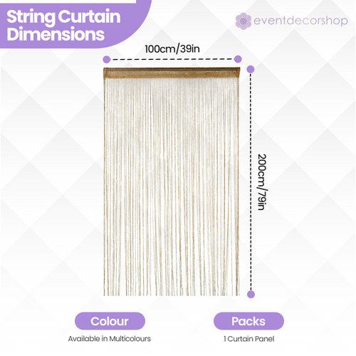 Event Decor Shop String Curtain Panel - Gold MSRP: Was: From: £5.39 MSRP: Was: From: £4.49 MULTIBUY PRICE: AS LOW AS Trustpilot Our String Curtains come with a width of 90cm & 200cm length, making them perfect to use for complementing the theme of a room or event. This glittering fabric string curtain does not... View Item View Item