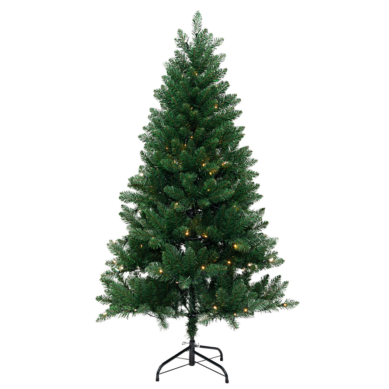 5FT: 1.5m Tall, 350 branch tips, 140 warm white LED lights. Made from a durable PVC/PE blend