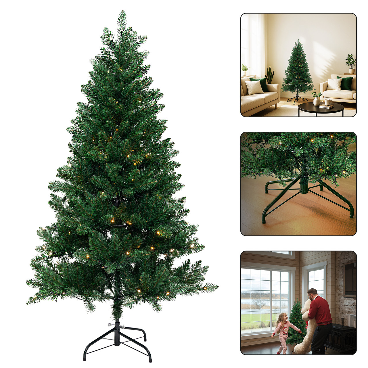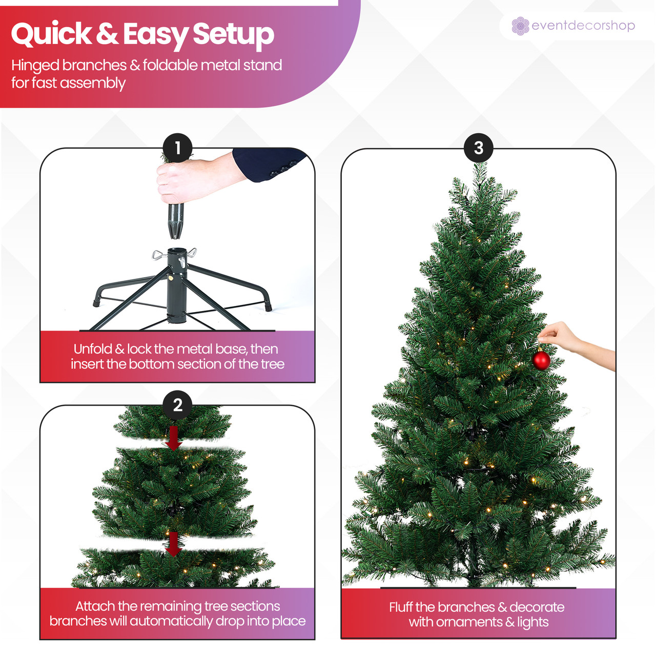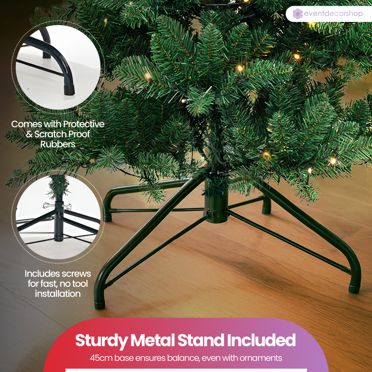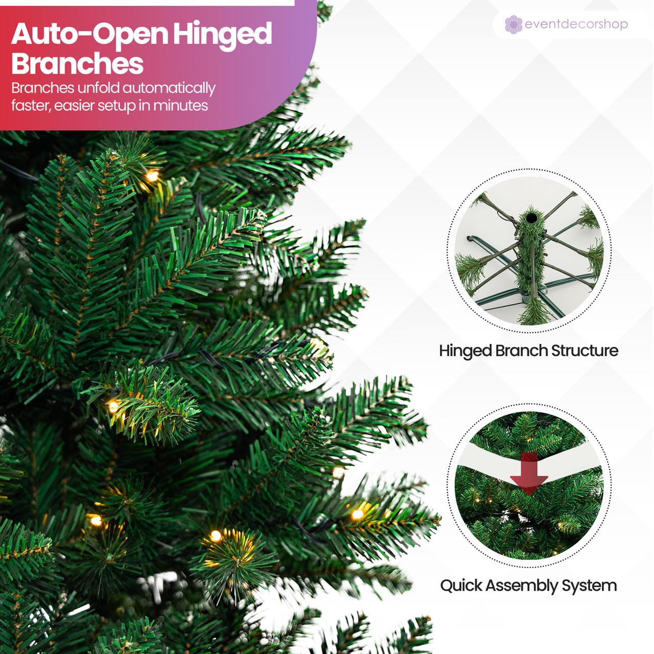 PRE-LIT WITH FESTIVE GLOW – This pre lit Christmas tree comes with 100, 140 or 200 warm white LED lights already attached. Simply unfold, plug in & enjoy a welcoming holiday glow with no need for untangling wires or adding extra lights, making decorating quick & stress-free.