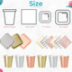 The dining plates have a size of 9 inches (23cm), dessert plates have a size of 7 inches (18cm), napkins haev a size of 6.5 inches x 6.5 inches (16.5cm x 16.5cm) and the paper cups hold 266ml (9oz) of fluid. This dinnerware set comes in opulent colours which adds sparkle & richness to your dining.