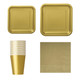 Our dinnerware set contains 14 large square plates, 16 dessert plates, 14 cups and 20 napkins. Total of 70 items in the dinnerware set. Enhance your dining experience with this beautiful disposable dinnerware & set the scene for a meal to remember.
