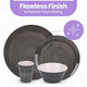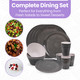 Elevate your dining experience with this 16-piece melamine dinner set, crafted from premium-quality melamine that is lightweight, sturdy, and resistant to breaks. The set features a striking charcoal grey swirl design with subtle circular brushstroke patterns, beautifully contrasted by the crisp white interiors of the bowls and tumblers. Its sleek two-tone finish brings a contemporary elegance that works just as well for everyday dining as it does for stylish outdoor entertaining.