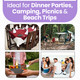 Lightweight to carry and simple to clean, the set is chip-resistant and safe for both adults and children. With dinner plates, side plates, bowls, and tumblers included, it provides a complete dining solution for family meals on the go.