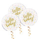 Our high-quality round shaped large foil balloon measures 18 inch (45cm) and includes 1 foil balloon. The metallic balloons are made from premium-grade foil which is thick and uniformly coloured. This balloon features a "Hello Baby" print on it with colourful polka dots.