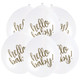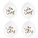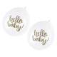 They are made of latex rubber and are of helium-grade, so you can even fill them up with helium gas. The balloons feature a "Hello Baby" print on it.