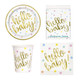 This baby shower party supplies set contains 16pcs large plates, 16pcs cups, and 16pcs napkins, 1pc tablecloth. Total 49pcs dinnerware set. Enhance your dining experience with this beautiful disposable dinnerware & set the scene for a meal to remember