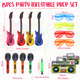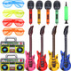 These inflatable musical instruments come with 15pcs (4pcs of guitars, 4pcs of microphones, 4pcs of eyeglasses, 2pcs of radio and 1pc of an air pump for inflating balloons)