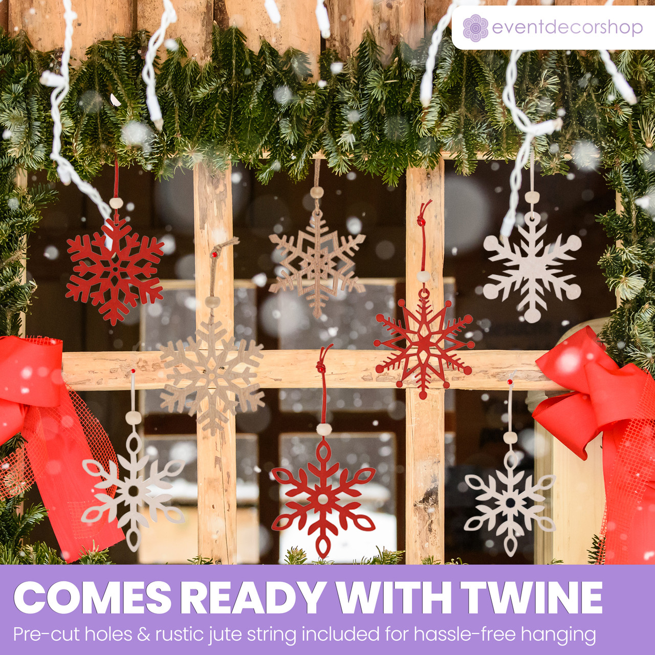 Each wooden snowflake ornament is fitted with a sturdy jute loop and a decorative bead, ensuring a secure hang on Christmas trees, wrapped gifts, or stair railings. Lightweight yet durable, they’re easy to use and designed to last year after year.
