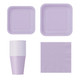 Our dinnerware set contains 14 large square plates, 16 dessert plates, 14 cups and 20 napkins. Total of 70 items in the dinnerware set. Enhance your dining experience with this beautiful disposable dinnerware & set the scene for a meal to remember.
