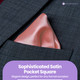 Fit, Feel, Function: At 9 inches (23cm) square, this satin piece offers both volume and elegance when folded yet remains pocket friendly. It accommodates various folding styles—flat, single point, crown, puff, layered, or winged—without distorting your jacket's silhouette.