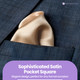Fit, Feel, Function: At 9 inches (23cm) square, this satin piece offers both volume and elegance when folded yet remains pocket friendly. It accommodates various folding styles—flat, single point, crown, puff, layered, or winged—without distorting your jacket's silhouette.