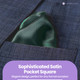 Fit, Feel, Function: At 9 inches (23cm) square, this satin piece offers both volume and elegance when folded yet remains pocket friendly. It accommodates various folding styles—flat, single point, crown, puff, layered, or winged—without distorting your jacket's silhouette.