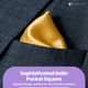 Fit, Feel, Function: At 9 inches (23cm) square, this satin piece offers both volume and elegance when folded yet remains pocket friendly. It accommodates various folding styles—flat, single point, crown, puff, layered, or winged—without distorting your jacket's silhouette.