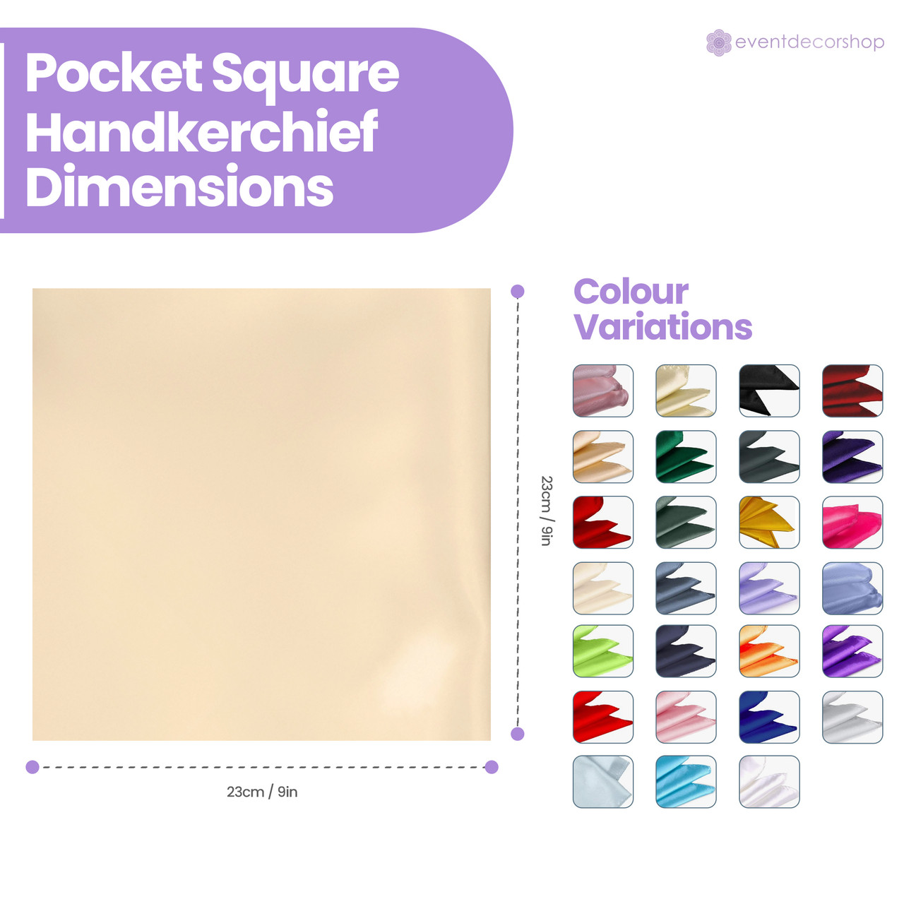 Fit, Feel, Function: At 9 inches (23cm) square, this satin piece offers both volume and elegance when folded yet remains pocket friendly. It accommodates various folding styles—flat, single point, crown, puff, layered, or winged—without distorting your jacket's silhouette.