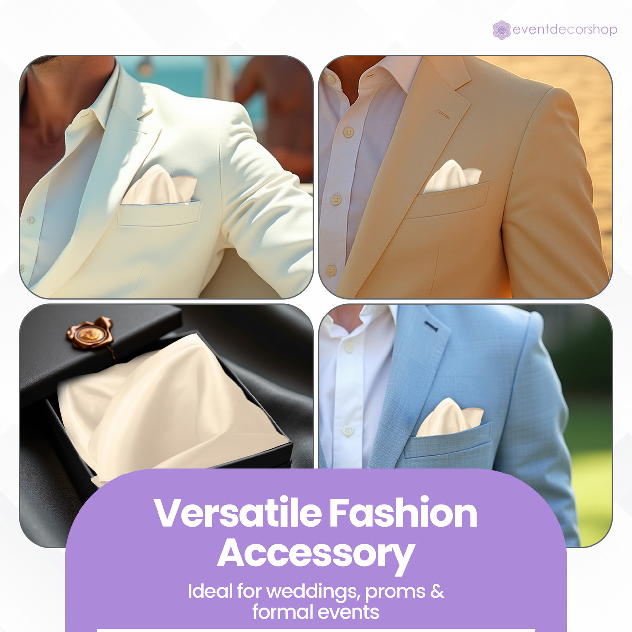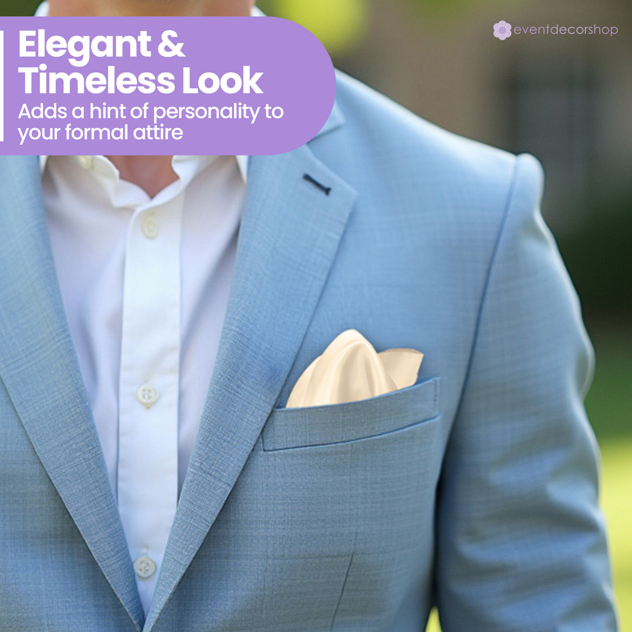 Style for Every Occasion: Event Decor Shop’s satin pocket square is a rare accessory that suits nearly any event. Whether it’s a groom, bridesmaid, executive, or fashion-conscious teen at their first formal function, this piece adds a refined touch without overwhelming the look. Ideal for weddings, black-tie events, school proms, or business dinners. Its adaptability also makes it a thoughtful gift for fashion enthusiasts.