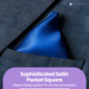 Fit, Feel, Function: At 9 inches (23cm) square, this satin piece offers both volume and elegance when folded yet remains pocket friendly. It accommodates various folding styles—flat, single point, crown, puff, layered, or winged—without distorting your jacket's silhouette.