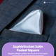Fit, Feel, Function: At 9 inches (23cm) square, this satin piece offers both volume and elegance when folded yet remains pocket friendly. It accommodates various folding styles—flat, single point, crown, puff, layered, or winged—without distorting your jacket's silhouette.