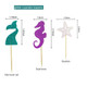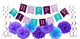 This balloon set includes everything you need to decorate for a birthday party! The set includes a "Happy Birthday" banner, fluffy pompoms, white, purple, and green balloons, cupcake toppers, spiral decorations, and mermaid hats. It's a perfect way to add a festive touch to any celebration!