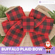 This farmhouse Christmas wall décor features a red and black buffalo plaid bow, rustic burlap trim, and faux pine foliage for a touch of nature-inspired detail. Together, these classic Christmas elements bring texture and warmth—perfect for woodland, retro, or country-themed decorations.