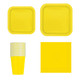 Our dinnerware set contains 14 large square plates, 16 dessert plates, 14 cups and 20 napkins. Total of 70 items in the dinnerware set. Enhance your dining experience with this beautiful disposable dinnerware & set the scene for a meal to remember.