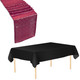 Our elegant rectangle plastic tablecloth and sequin table runner come with 2 pcs. This table runner has a length of 108 inches (274cm) & width of 11 inches (28cm). The tablecloth has a width of 54 inches, and a length of 108 inches.