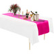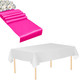 Plastic Tablecloth and Satin Table Runner Set - White & Fuchsia