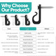 Crafted from premium zinc alloy, these heavy-duty hooks support up to 10 lbs without bending or warping. The rust-resistant black coating guards against corrosion and moisture, ensuring long-lasting durability in any season. Suitable for both indoor and outdoor use.