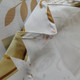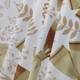 60" x 84" Rectangle Christmas Ribbon & Leaf Print Polyester Wipe Clean Tablecloth - White & Gold