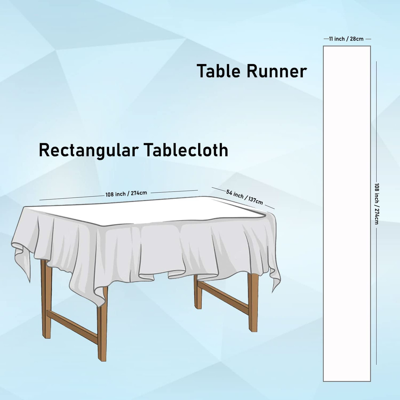 Our elegant 1pc disposable rectangle table cover and 1pc sequin table runner. This tablecloth perfectly covers a table or surface to protect it from scratches and spillage.