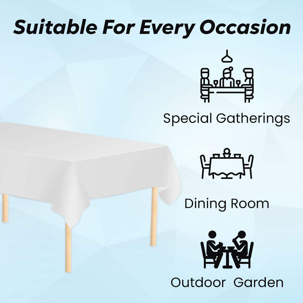 Our tablecloths are also perfect for draping tables for parties, and indoor as well as outdoor use.