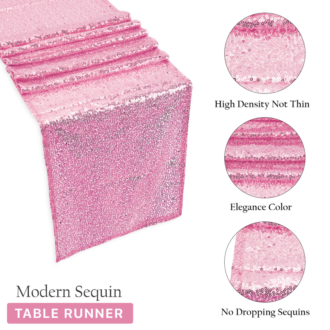 These glitter sequin table runner comes with high-density sequins and has hard net embroidery that gives them a good-quality finish. The sequin table runner has a length of 108 inches/274cm (approx.), and a width of 11 inches/28cm (approx.).