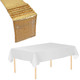 Our elegant 1pc disposable rectangle table cover and 1pc sequin table runner. This tablecloth perfectly covers a table or surface to protect it from scratches and spillage.