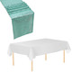 Our elegant 1pc disposable rectangle table cover and 1pc sequin table runner. This tablecloth perfectly covers a table or surface to protect it from scratches and spillage.