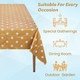 The durable rectangle PVC tablecloth can be used indoors or out and are easily wiped clean.