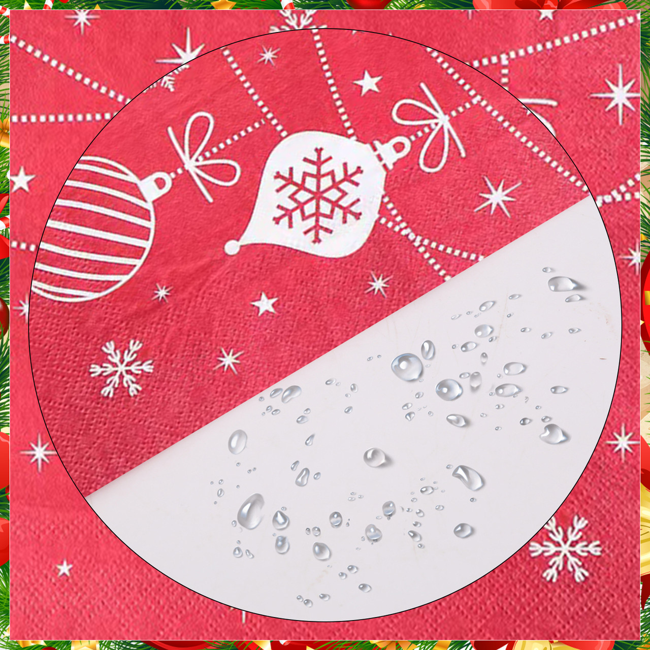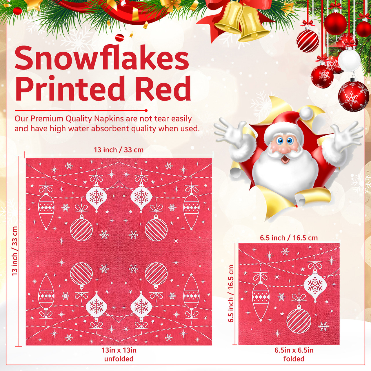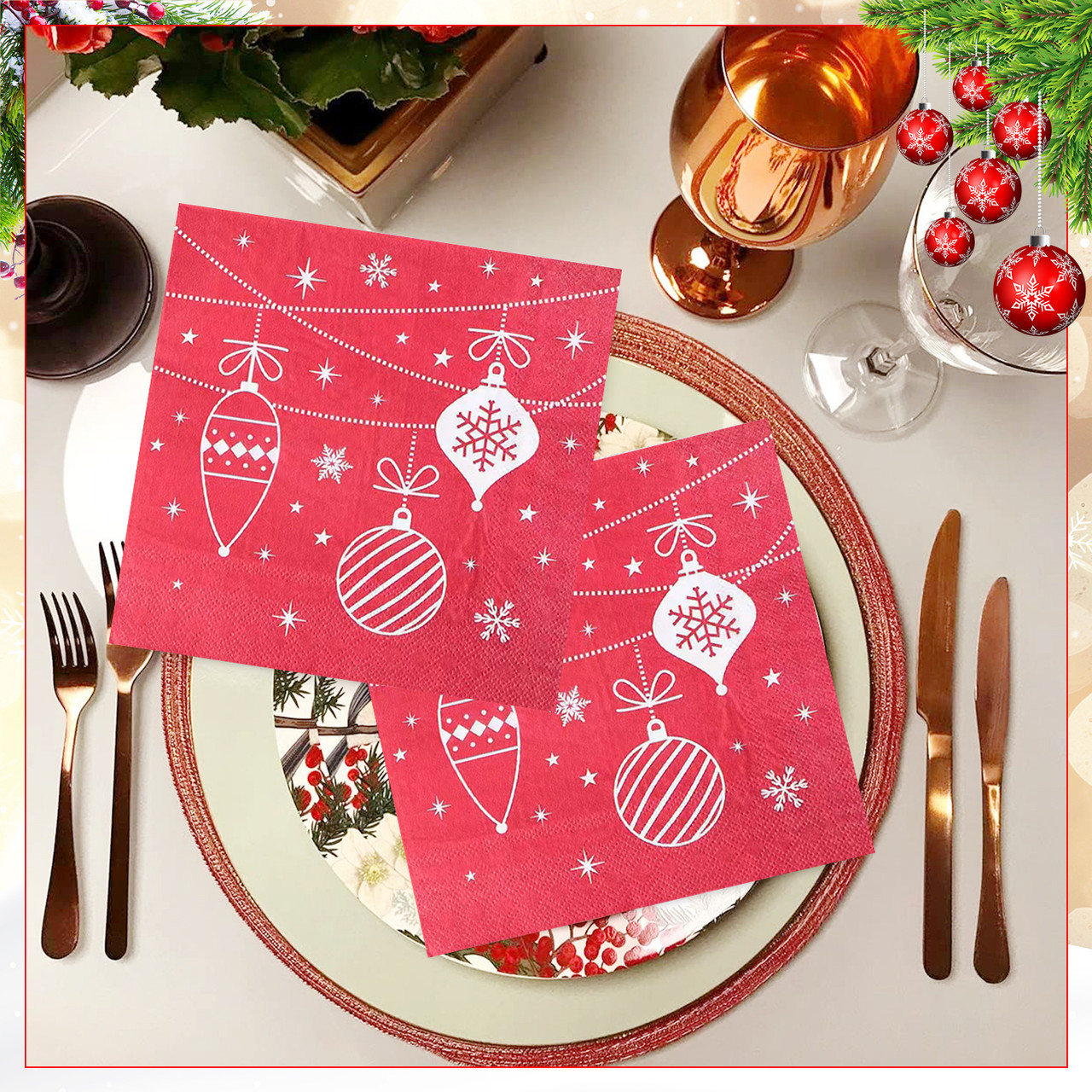 - [ELEGANT DESIGN]: These napkins come with a printed Xmas baubles which adds sparkle & richness to your Christmas dining party.