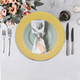 This beautiful round glass charger plate will add a touch of elegance and luxury to any dinner table.