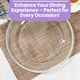 This beautiful round glass charger plate will add a touch of elegance and luxury to any dinner table.