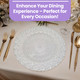 Using the charger plates not only help decorate a table, but can also protect it from hot food and spillages. They can also be used as serving plates or presentation plates for small decorative items.