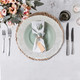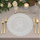 This beautiful round glass charger plate will add a touch of elegance and luxury to any dinner table.